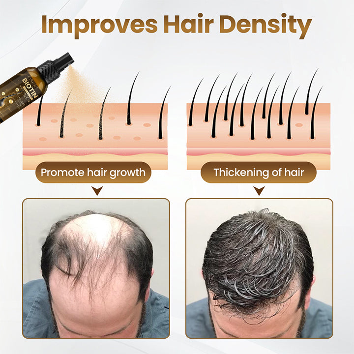 The secret behind stronger, fuller hair lies in Biotin â also known as Vitamin B7 or Vitamin H. This powerhouse nutrient is essential for maintaining healthy hair, skin, and nails. As the key ingredient in our hair growth spray, it supercharges keratin production, reinforces fragile follicles, and improves elasticity from root to tip â helping your hair grow faster, stay stronger, and look naturally radiant again.
